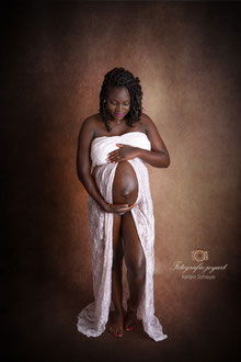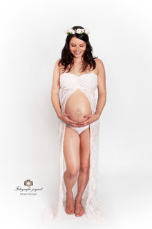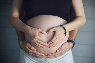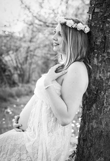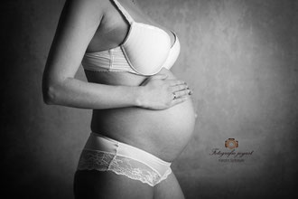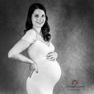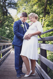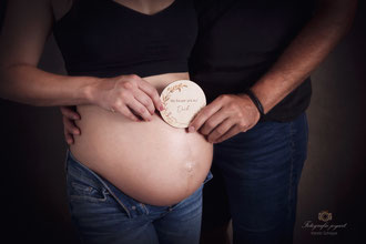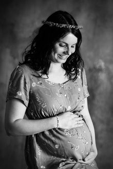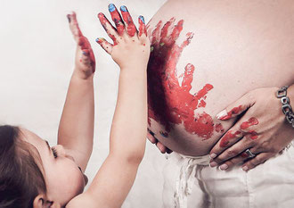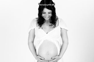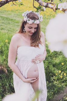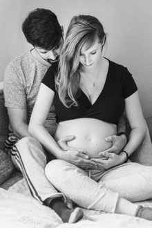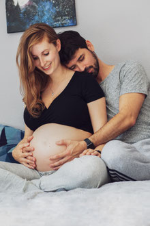 Der ideale Zeitpunkt für Bauchfotos ist um den 7./8. Monat. Allerdings kann es bei zweiten Kindern schon früher notwendig sein, eine Fotosession anzusetzen. Ich